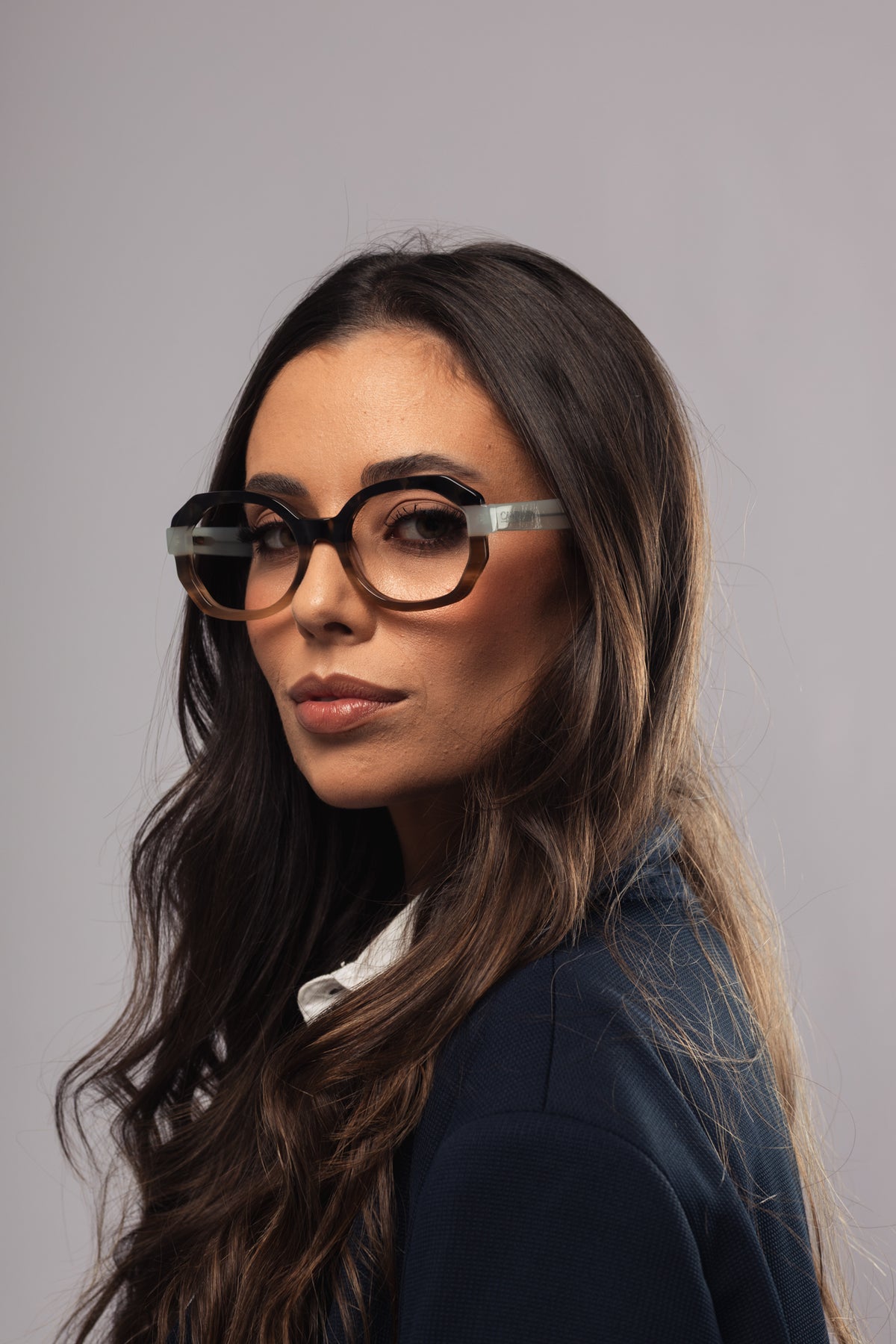 Esse modelo tem tamanho médio, que funciona bem para a maioria dos rostos. É desenvolvida no Acetato Italiano, material leve, confortável e de altíssima qualidade.